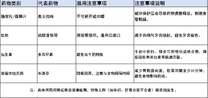日常生活中 很多人吃药时随便喝口水就吞下去 不过,如果喝水方法不正确 治病的良药也可能变成“致命的毒药” 来自宁波的张先生 就因服用了几片药 导致食道长满了“刀口” 究竟是怎么回事? 几片家中常备药 引发了一场“食道危机” 前不久,宁波35岁的张先生因咽喉不适自行服用了多西环素肠溶胶囊,他在服药时只喝了一小口水便匆匆躺下睡觉。 次日一早,他便出现了胸痛、吞咽困难等症状。紧急就医后,医生通过胃镜发现他的食管黏膜布满溃疡,经分析这正是药物长期滞留食管导致的“药物性食管溃疡”。 △药物性食管溃疡胃镜示例。图源:南京市江宁医院 药物为何会损伤食管? 当饮水量不足时,药物可能黏附在食管壁上。以多西环素为例,这种抗生素本身具有刺激性,若滞留时间过长就会开始腐蚀黏膜。平躺姿势更会延缓药物通过食管的时间,导致黏膜反复受损,最终形成溃疡。 哪些药物会引发“药物性食管溃疡”? 除了张先生服用的多西环素之外,抗生素类(四环素等)、非甾体抗炎药(阿司匹林、布洛芬等)也可能引起食管损伤和溃疡。所以,服用这些药物时需严格遵守医嘱。 △图源:武汉晚报 服药坏习惯 你占了几条 饮水量不足:仅用一口水送服,导致药物滞留食管。 干吞药物:不用水送服,药物直接黏附食管黏膜。 错误姿势:服药后立即平躺或弯腰,延缓药物通过食管的时间。 多种药物同时吞服:药片堆积在食管,延长接触时间。 用饮料送药:果汁、牛奶、茶、咖啡等可能改变药物性质或加重刺激。 △西柚汁、橙汁、石榴汁中都有一些成分,可以抑制肠道和肝脏中某些酶对药物的代谢,导致这些药物吸收过多、浓度升高,造成药物中毒或副作用增加。 △牛奶中的钙会和左氧氟沙星发生络合反应,形成人体不能吸收的物质,影响药物的吸收和疗效。 △茶水和咖啡中含有大量的茶碱和咖啡因,如果用这些饮料送服某些抗抑郁药物、抗生素或茶碱缓释片,会导致严重的中枢兴奋作用。 服药后立即运动:身体晃动可能导致药物卡在食管褶皱中。 忽略服药时间:未按医嘱空腹或餐后服用,影响药物溶解速度。 忽视剂型:掰开肠溶片或咀嚼缓释胶囊,破坏药物保护层,增加药物刺激性。 如何避免药物性食管溃疡? 牢记科学服药“三要诀” 喝够水:200毫升是“保命线” 充足的水(建议200-300毫升温水)能形成“水流滑梯”,帮助药物快速通过食管进入胃部,避免滞留。水温以40℃左右为宜,避免过烫或冰水刺激黏膜。 胶囊类药物(如多西环素),因外壳遇水易变黏,需250毫升以上水送服。 双膦酸盐类(如阿仑膦酸钠),需空腹服用并用300毫升以上水,服药后30分钟内禁止平躺或进食。 保持直立:30分钟是“黄金时间” 服药后保持坐直或站立至少30分钟,利用重力加速药物通过食管,避免因平躺或弯腰导致药物回流滞留。 此外,睡前服药需提前1小时完成,确保药物完全进入胃部;行动不便者可用枕头垫高上半身至45度角,减少风险。 特殊药物需要特殊对待 △图源:武汉晚报 不同药物 对水量、水温等要求不同 要充分了解后再服用 服药后不要立马躺平 建议保持上身直立至少半小时 服药期间密切关注身体反应 一旦出现吞咽疼痛、胸痛 恶心呕吐及腹痛等症状 及时就医,尽早诊治 |