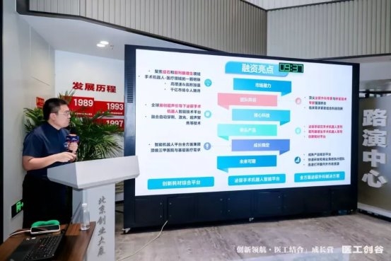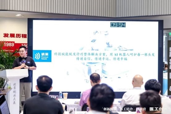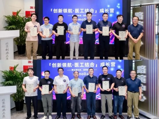 2025年6月27日,「创新领航·医工结合」成长营Demo Day在北京成功举办,伴随着结业证书的颁发,本届「创新领航・医工结合」成长营正式画上圆满句号,顺利收官!本次Demo Day深度聚焦智能诊疗器械、生物材料、AI 制药、精准医疗等前沿领域。14个医工结合领域优质项目璀璨亮相,他们凭借卓越的技术创新力、强悍的团队协同作战力、持续迭代的产品力……全面展示了其在解决行业痛点和技术难点等方面的突出能力。 过去近四个月,「创新领航·医工结合」成长营秉持“孵化硬科技、培育新领袖”使命,致力于打通医工交叉领域“技术-临床-产业-资本”全链条闭环,为30家新锐项目提供系统化的创业支持。从“CEO全方位成长模型”塑造,到研发与专利转化、临床与注册、企业管理与营销渠道等,学员们不仅获得了实战工具,更在“孵化·成长·腾飞”中找到了同行者的力量。 颁发「创新领航·医工结合」成长营结业证书 这场活动不仅为业界呈现了一场精彩的硬科技智力输出盛宴,更受到了来自丹麓资本、中科先进、水木创投、顺澄资本、首发展投资、全球健康产业创新中心、弘润同创、北京北咨私募股权投资基金管理有限公司等在内的多家投资机构的投资嘉宾的高度认可与赞誉。 评审阵容:第一列(从左到右): 丹麓资本管理合伙人/北京总经理许谦、中科先进执行董事王剑华、北咨私募股权投资总监刘红涛、全球健康产业创新中心投资总监杜福崇。 第二列(从左到右): 水木创投投资总监吴琬琰、弘润同创投资总监郭建宇、顺澄资本投资总监张新、首发展投资高级投资经理罗曦欢。 1.爱尔慈红外医学 本项目是医疗型机器人的核心功能系统,通过医用红外热成像技术(MIT)采集患者自身热态数据,通过软件算法解析数据自动输出健康/诊断结论。本项目团队协助俞梦孙、钟南山两位院士完成“十一五”国家重大科技专项“上呼吸道快速筛查自动分析诊断系统”的开发,是国内医学领域第一个人工智能产品。 2.磅客策 磅策医疗由哈工大机器人体系孵化以机器人技术为核心的创新公司。产品涵盖毛发检测诊断、治疗、养固全场景创新产品矩阵,在毛发领域是国内领先的全套毛发诊疗智能化全流程解决方案提供商。本产品由华山医院皮肤科吴文育担任首席临床专家研发,应用于毛发移植手术。通过立体视觉识别技术,精准获取毛囊的出射角度、深度、直径等关键参数从而获取毛囊位置信息,再联合驱动控制电机、智能传感器等多个硬件执行结构,实现机械臂力感知、实时运动补偿和穿刺路径智能规划并提取毛囊。 3.康乐云 借助人工智能计算出皮肤到肿瘤病灶最小距离以及确定肿瘤的形状,大小和具体位置,计算出I-125粒子的量剂、数量、方向以及均匀分布在肿瘤组织,复发难治胸部肿瘤得到有效的治疗。粒子植入的剂量可精确控制,避免“冷区”和“热区”的出现,尤其是能够明显减少局部复发和放射性肺炎的发生,同时也缩短了住院时间,节约患者的医疗开支,取得了患者满意、医师满意的双重效果,能够明显提高局部控制率,显著减低治疗副作用的发生,从而节约了医疗资源,降低了医疗成本,减轻了社会负担,并且在相当程度上提高了患者生活质量。 4.库博生物 北京大学和晶泰科技合作研发的靶向肿瘤环状DNA(ecDNA)的创新平台,旨在开发新一代抗癌药物(小分子或ADC等),克服现有疗法的耐药。ecDNA作为多个耐药机制更为深层的生物机理,携带了多种癌基因和耐药基因,靶向ecDNA相当于同时靶向多个癌基因,能够产生类似于多种靶向药物叠加的治疗效果。本项目创新性地融合了AI算法、图像组学技术以及药物多组学数据,成功开发出业界前沿的单细胞药物表型组学平台(即多模态AI大模型)可显著加速靶向ecDNA药物的发现与开发进程,有效克服现有疗法所面临的耐药性难题,潜在市场达万亿规模。 5.蓝海创想 治疗肿瘤水肿行业世界首创研发的学习专家治疗的AI机器人(2022年北京市医疗器械概念验证揭榜挂帅项目—竞标主持),能学习、复刻、替代专家手法淋巴引流(国际标准疗法)治疗“肿瘤术后高并发症淋巴水肿的高致残慢性病”,解决每名患者每天需要1小时手法治疗的医生劳累痛点、水肿治疗医生稀缺难题,解决患者在家难以每天坚持半小时自我手法引流的痛点。 其临床驱动急需潜力:当前肿瘤水肿患者世界2.5亿(年增千万)、中国1500万(年增百万),直接治疗费用:世界万亿元/中国千亿元人民币的蓝海高新产业。 6.明视脑机 视觉重建核心原理为视觉系统将视网膜信号通过视束传送到一个丘脑的中继部分外侧膝状体(LGN),之后广泛的映射到初级视觉皮层(V1)。视觉信息在V1会有一个从功能上的展开,因此在V1进行电刺激是进行视觉重建的理想脑区。视觉重建系统通过一个摄像头拍摄面前的视觉图像,并通过算法将该图像重编码为不同通道电极的时空刺激模式模式,生成的刺激模式通过无线传输到脑内,通过埋植在脑内的柔性电极阵列电刺激初级视觉皮层相应区域,使被试在一定程度上恢复视觉。通过微创大规模植入、全植入电极系统,以无线通信和供电的模式可编程方法刺激视觉皮层,实现实时闭环、即插即用的视觉重建脑机融合系统。 7.瑞瓷医疗 本项目转化具有自主知识产权的钇稳定氧化锆(Y-TZP)人工牙种植体。与钛或钛合金种植体相比,具有良好的生物相容性和优